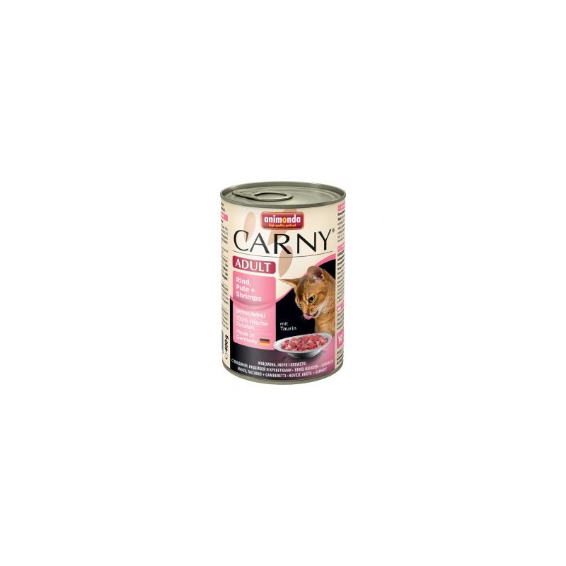 Wołowina, indyk i krewetki: wołowina (36%, mięso, płuca, serca, nerki, wymiona), indyk (25%, wątróbka, serca), krewetki (4%), węglan wapnia